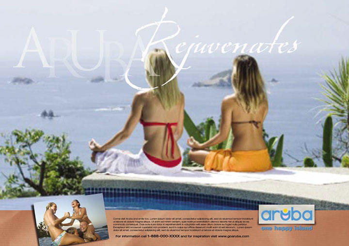 The Worldwide Creative Director at Y&R-NY mentored me on the Mexico Tourism account. That experience led me to lend a hand on the Aruba Tourism pitch at Zimmerman. Below is print that inspires the freedom and enjoyment of a well-deserved vacation.