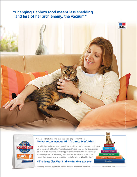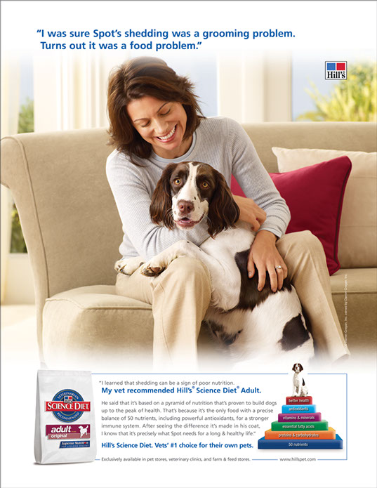 Hills Science Diet was my first experience working with animals. I learned that good trainers are just as important as good photographers. These problem/solution ads remind us that our pets are an important part of our family and understating their needs and dietary requirements is our responsibility.